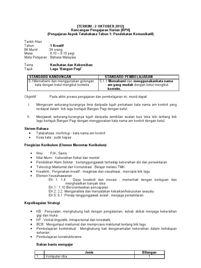 Contoh Rph Tahun Tiga Bahasa Melayu
